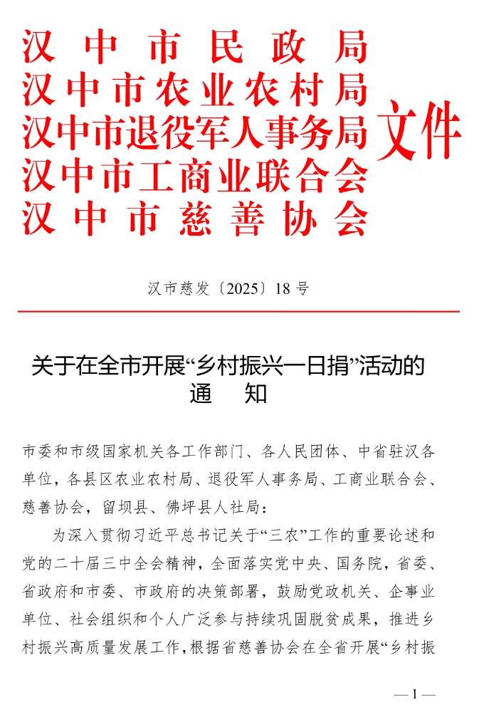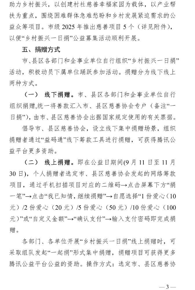 关于在全市开展“乡村振兴一日捐”活动的通知